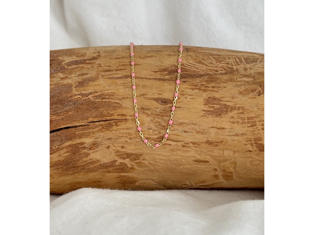 Jemný řetízkový náramek ozdoben kapičkami z pryskyřice o velikosti 1 mm.. Díky svému minimalistickému designu se krásně kombinuje s dalšími náramky, ale krásně vynikne i samostatně. Díky nastavitelné délce se přizpůsobí tvému zápěstí. Je nastavitelný na délku 15,5 cm, 16,5 cm a 17,5 cm a zakončen klasickým řetízkovým zapínáním.