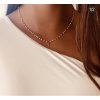Perličky jsou navlečené na šedém hedvábí. Společnost jim dělá destička o velikosti 3x8 mm s vyrytým nápisem LOVE. Destička je vyrobena ze stříbra ryzosti 925/1000 a nebo ze zlata ryzosti 585/1000. Délka náhrdelníčku je 42 cm.