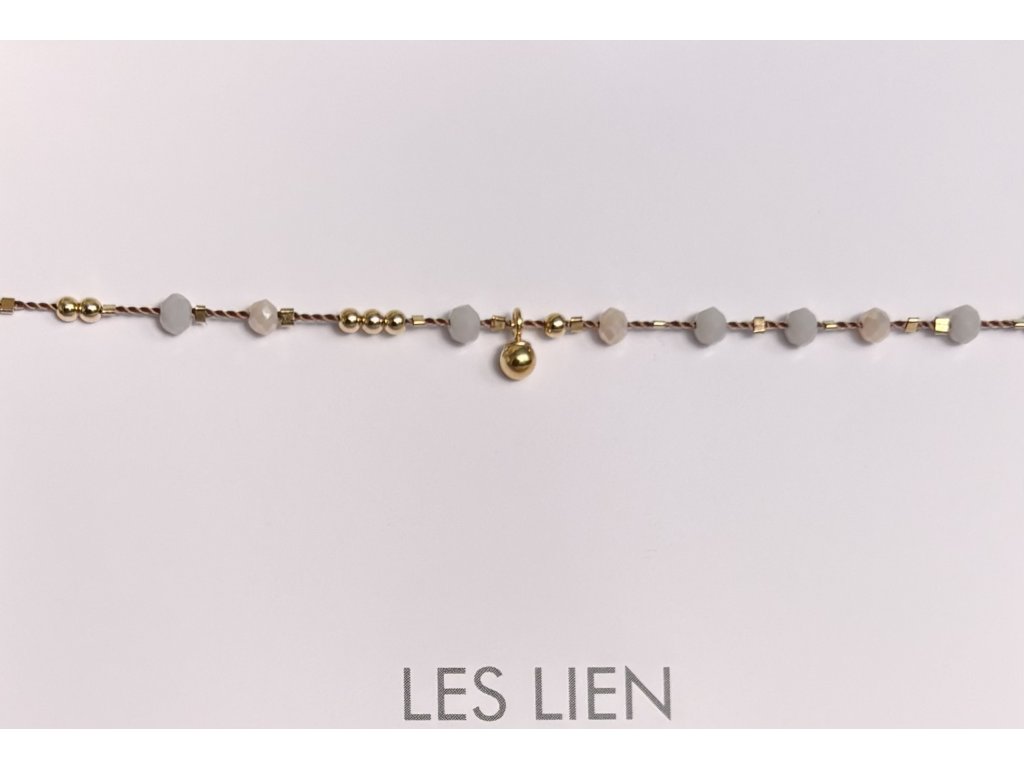 Barevné křišťálky ve velikosti 3mm jsou navlečeny na hedvábníku béžové barvy a jsou v kombinaci s gold filled (pozlacená mosaz) komponenty. Náramek je ukončen do shamballa vázání, jak my říkáme s cancourkama. Velikostně se přizpůsobí obvodu zápěstí 13 - 20 cm.