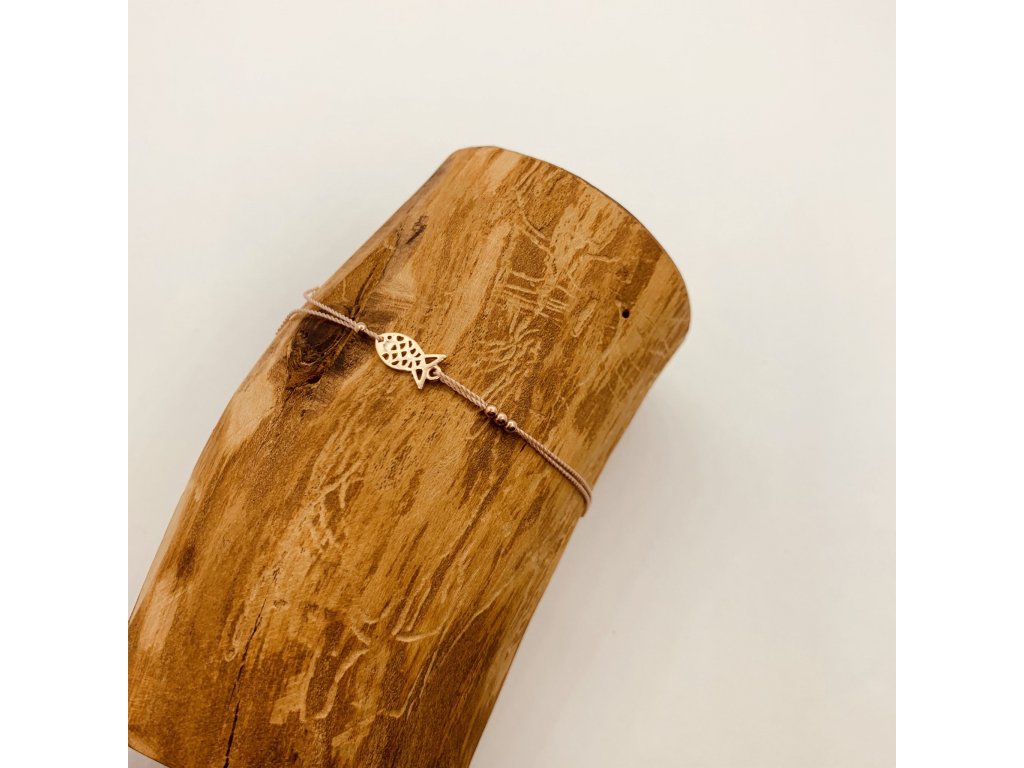 Rybička je komponent vyrobený ze zlata 585/1000 a nebo stříbra 925/1000. Navlečený je na hedvábíčku a ukončen stahovacím uzlem. Velikostně se tak přizpůsobí zápestí o obvodu 14-20 cm.