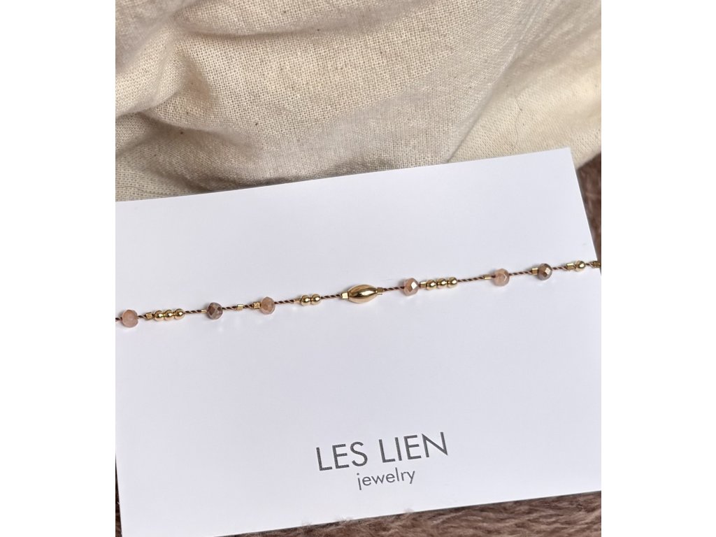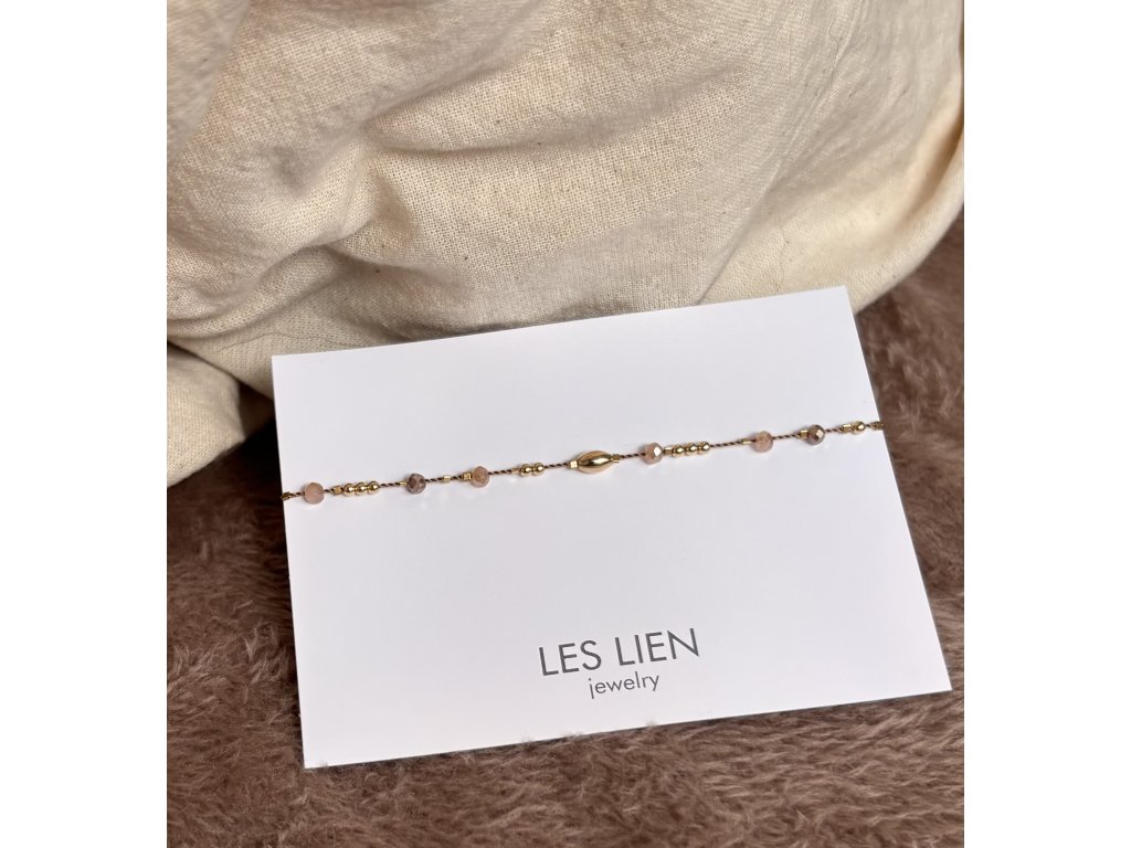 Barevné křišťálky ve velikosti 3mm jsou navlečeny na hedvábníku béžové barvy a jsou v kombinaci s gold filled (pozlacená mosaz) komponenty. Náramek je ukončen do shamballa vázání, jak my říkáme s cancourkama. Velikostně se přizpůsobí obvodu zápěstí 13 - 20 cm.